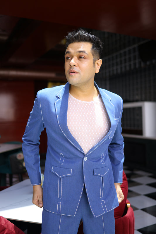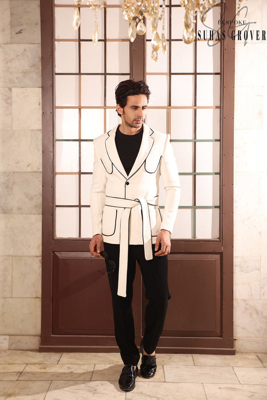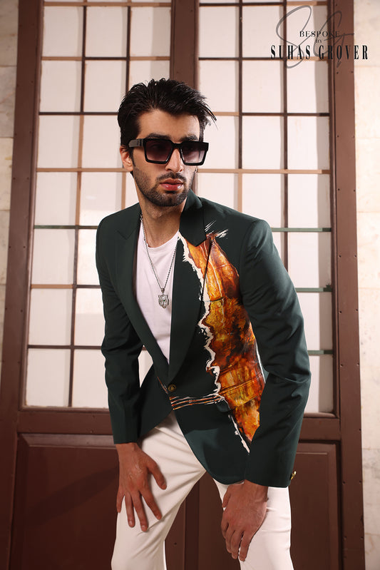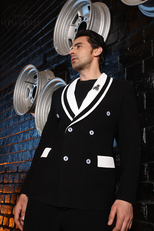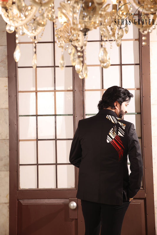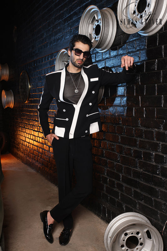 BLACK MODERN ART HANDPAINTED BLAZER SET
