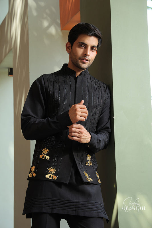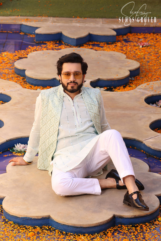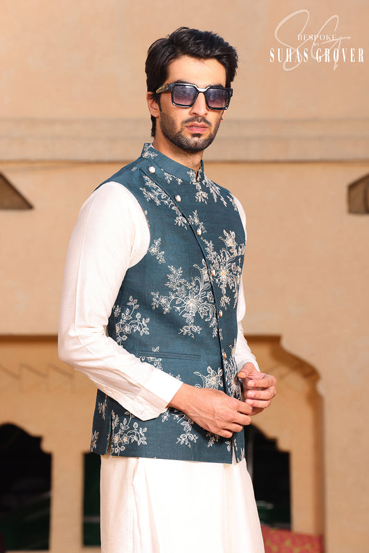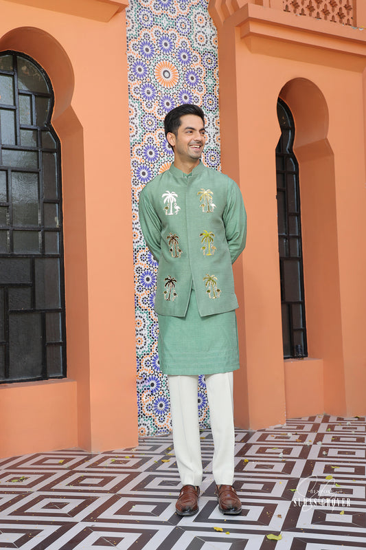 TEEL GREEN CHANDERI SILK NEHRU JACKET
