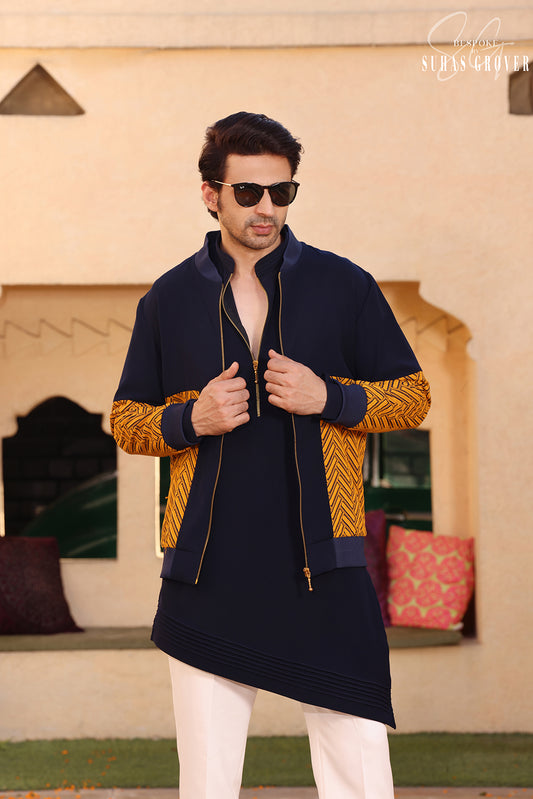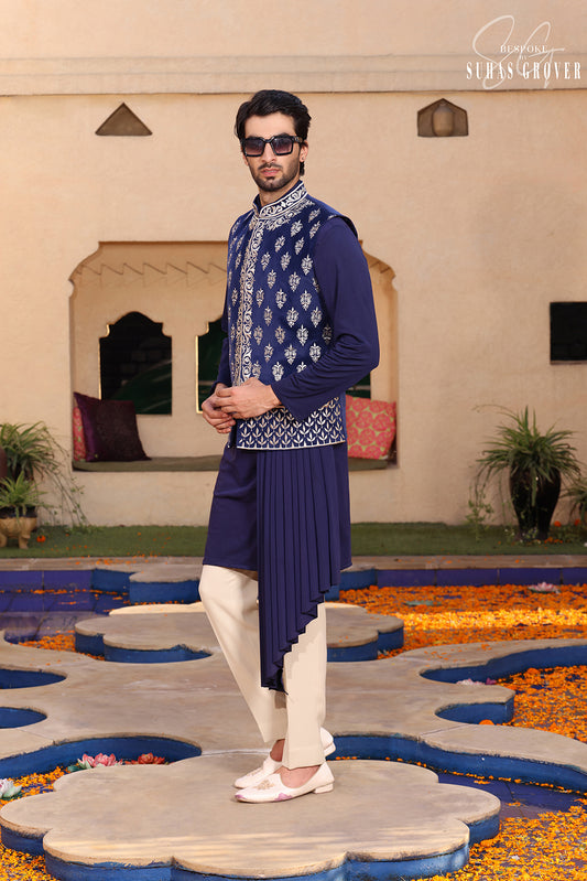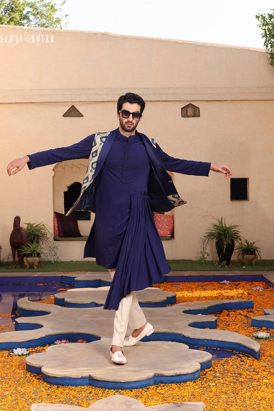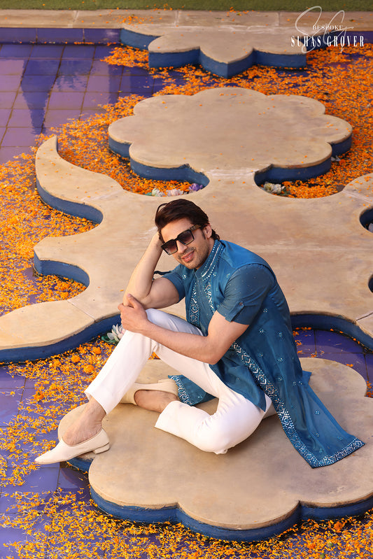 TEEL BLUE SHRUG NEHRU JACKET SET
