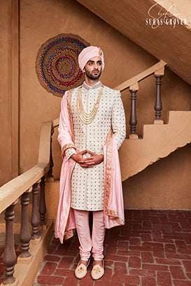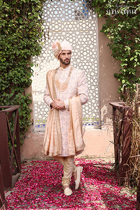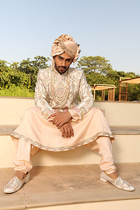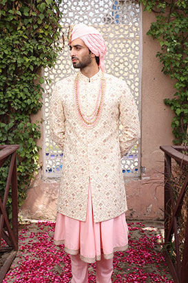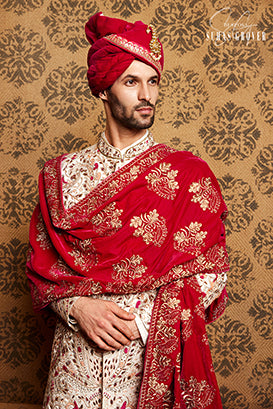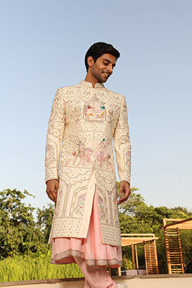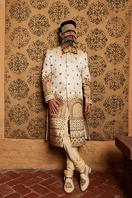 WHITE HEAVY EMBROIDERED SHERWANI SET