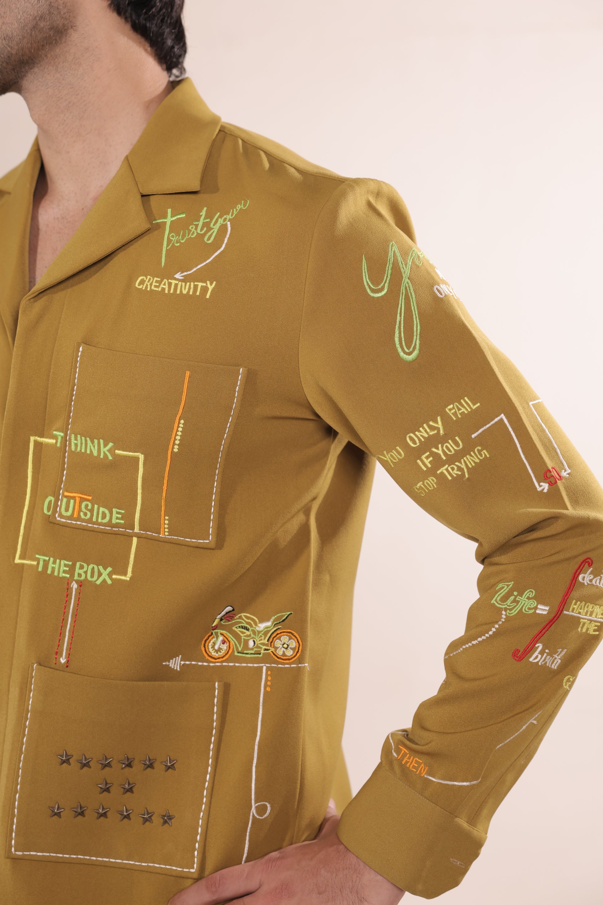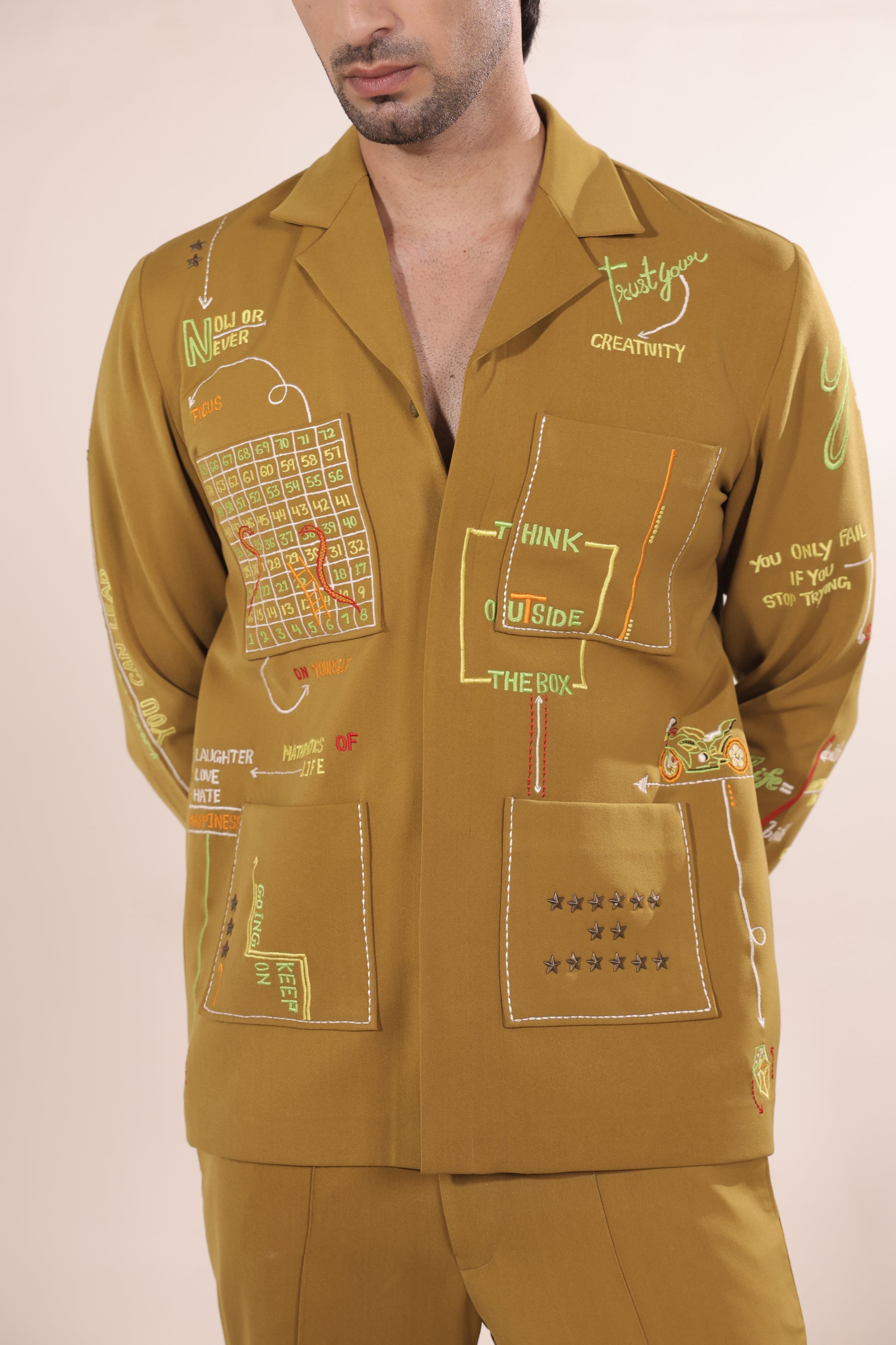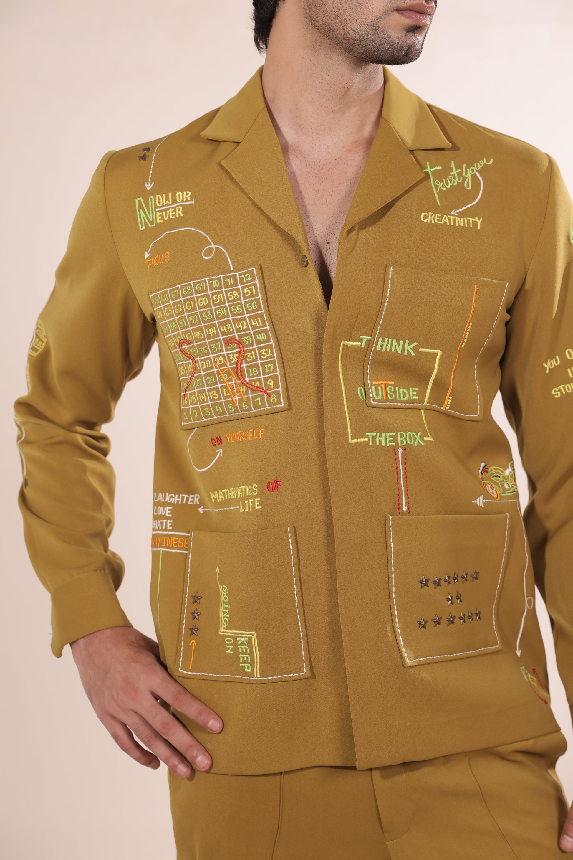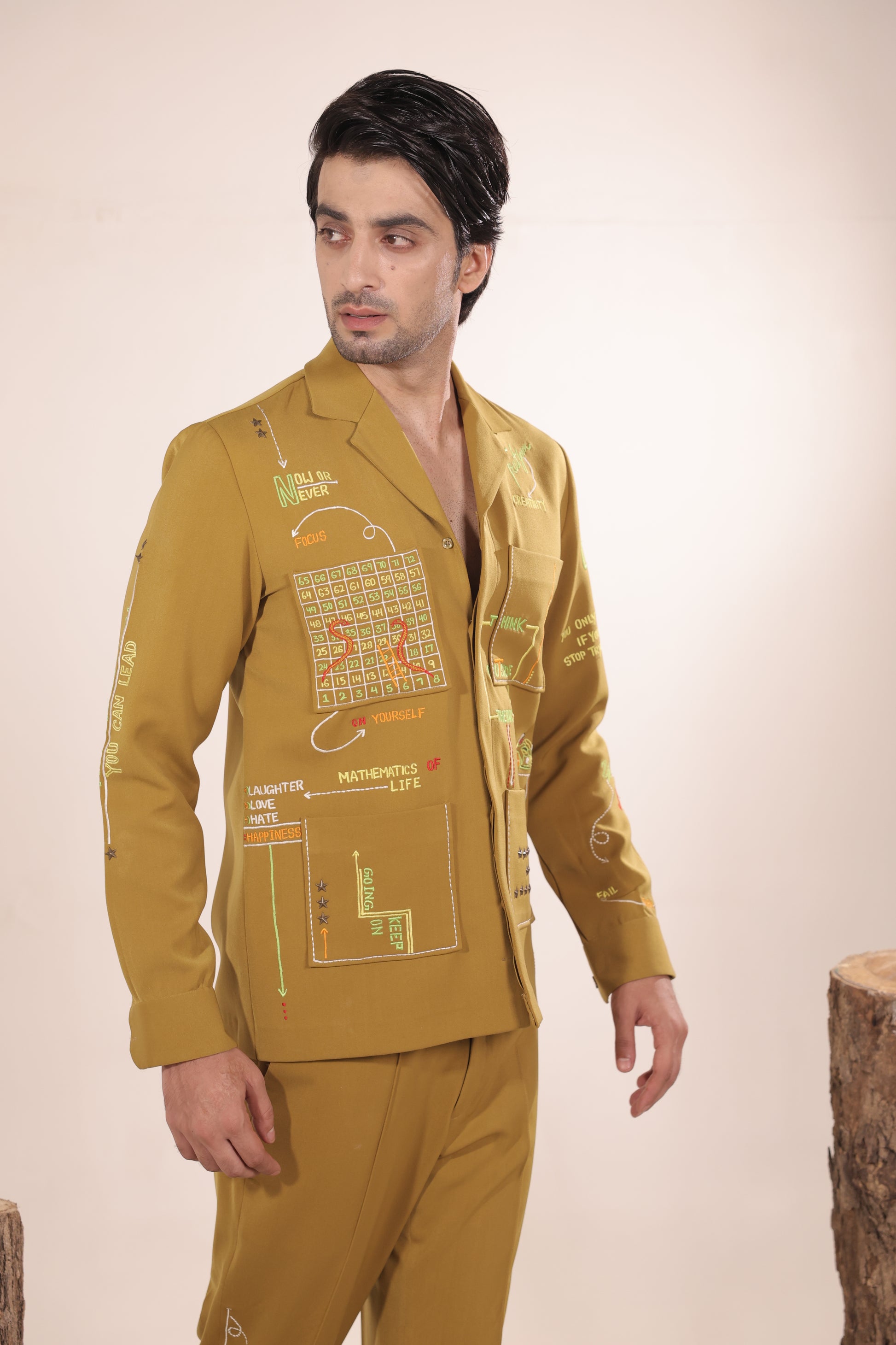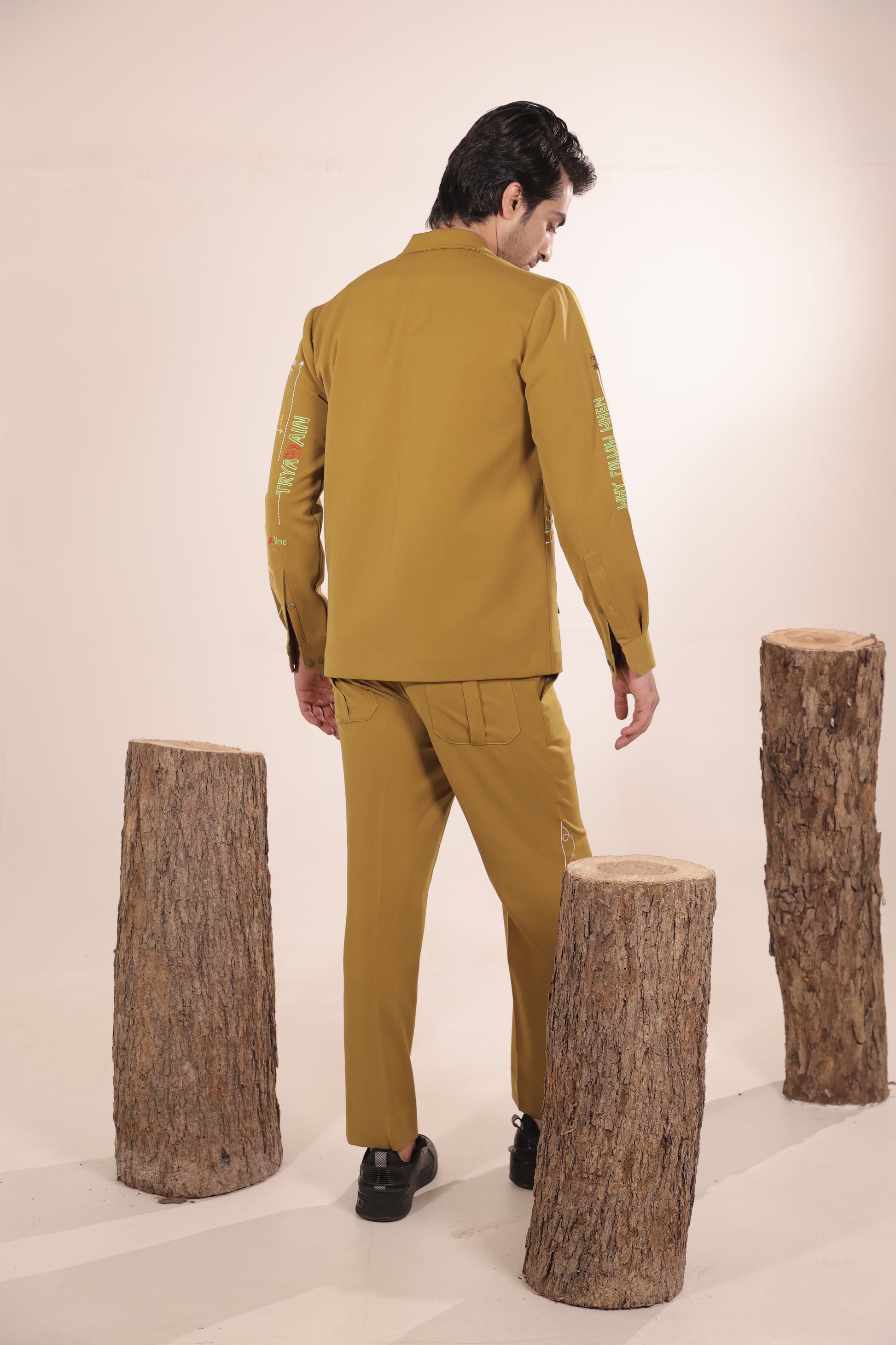 Featuring a mustard colour cord set in japenese lycra base with machine embroidery on it paired with mustard colour trouser. Perfect wear for parties , cocktail ceremonies & airport looks.
