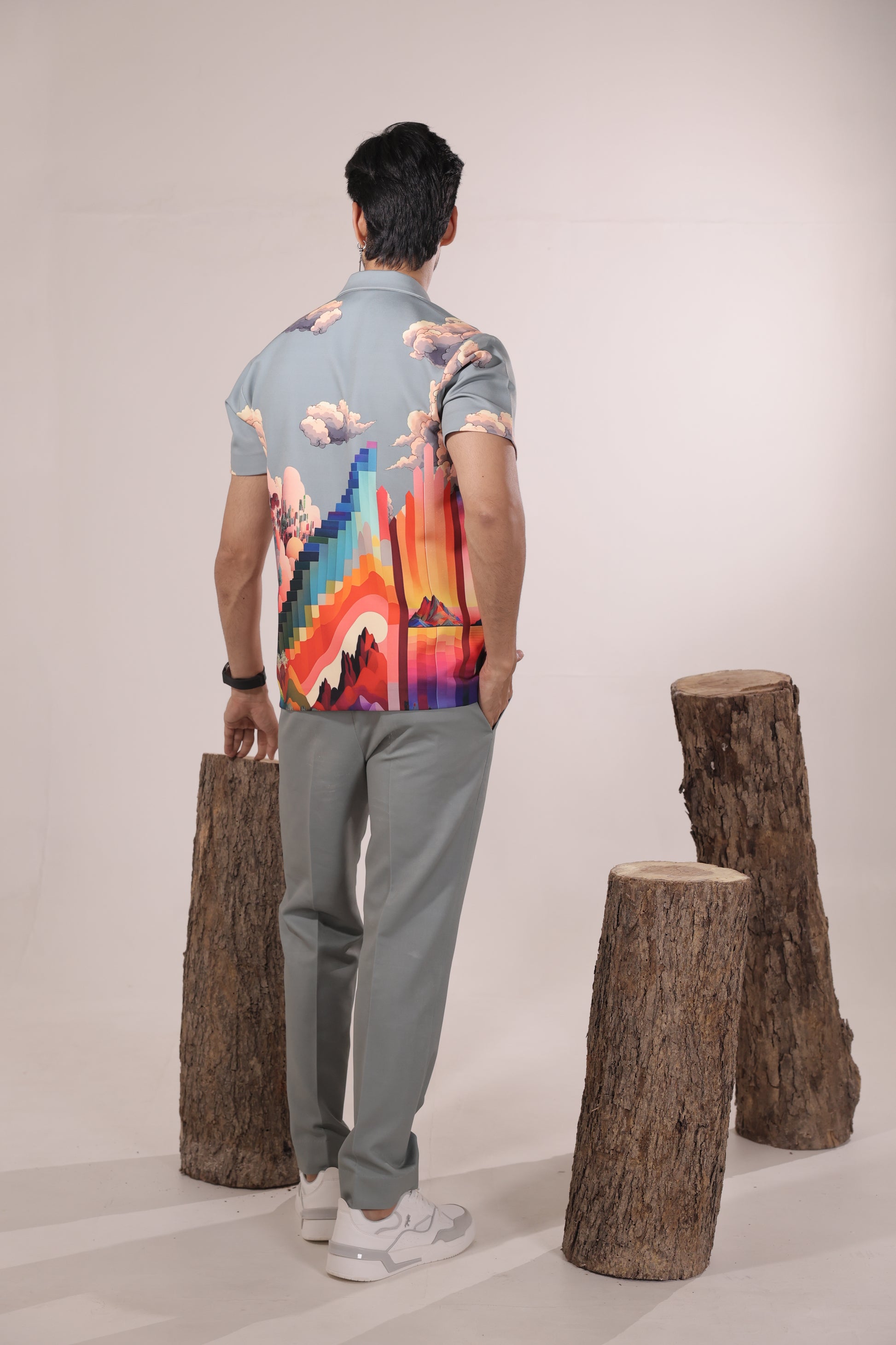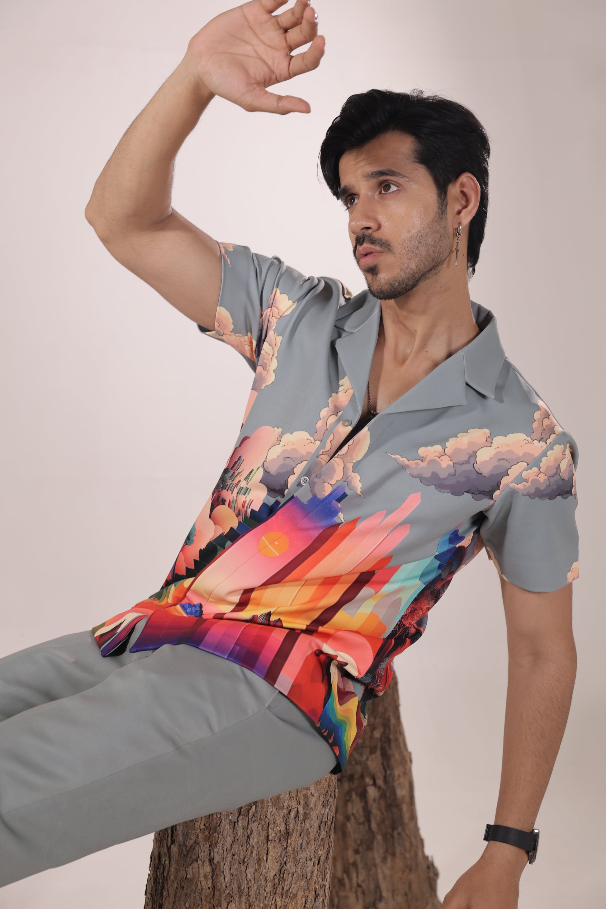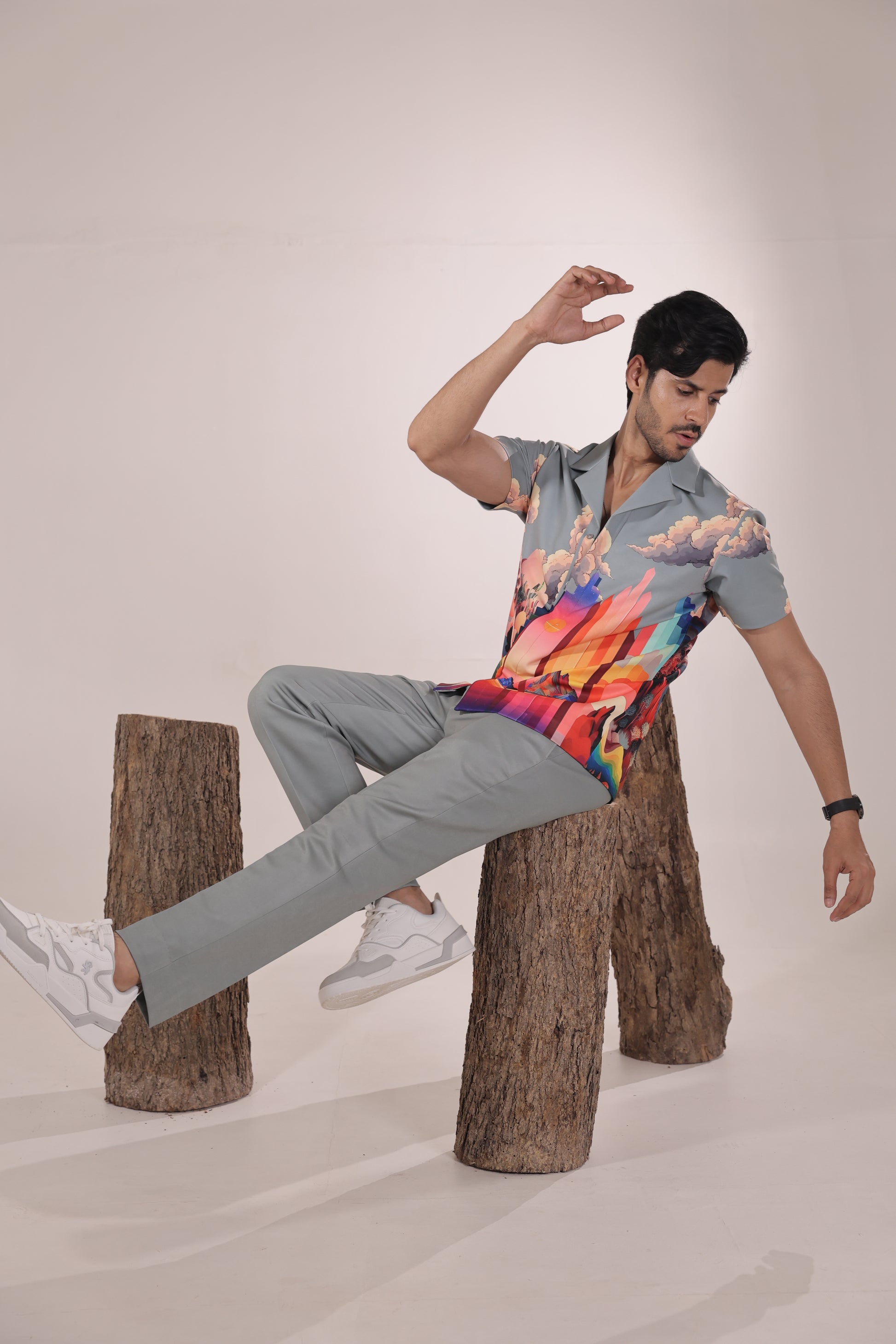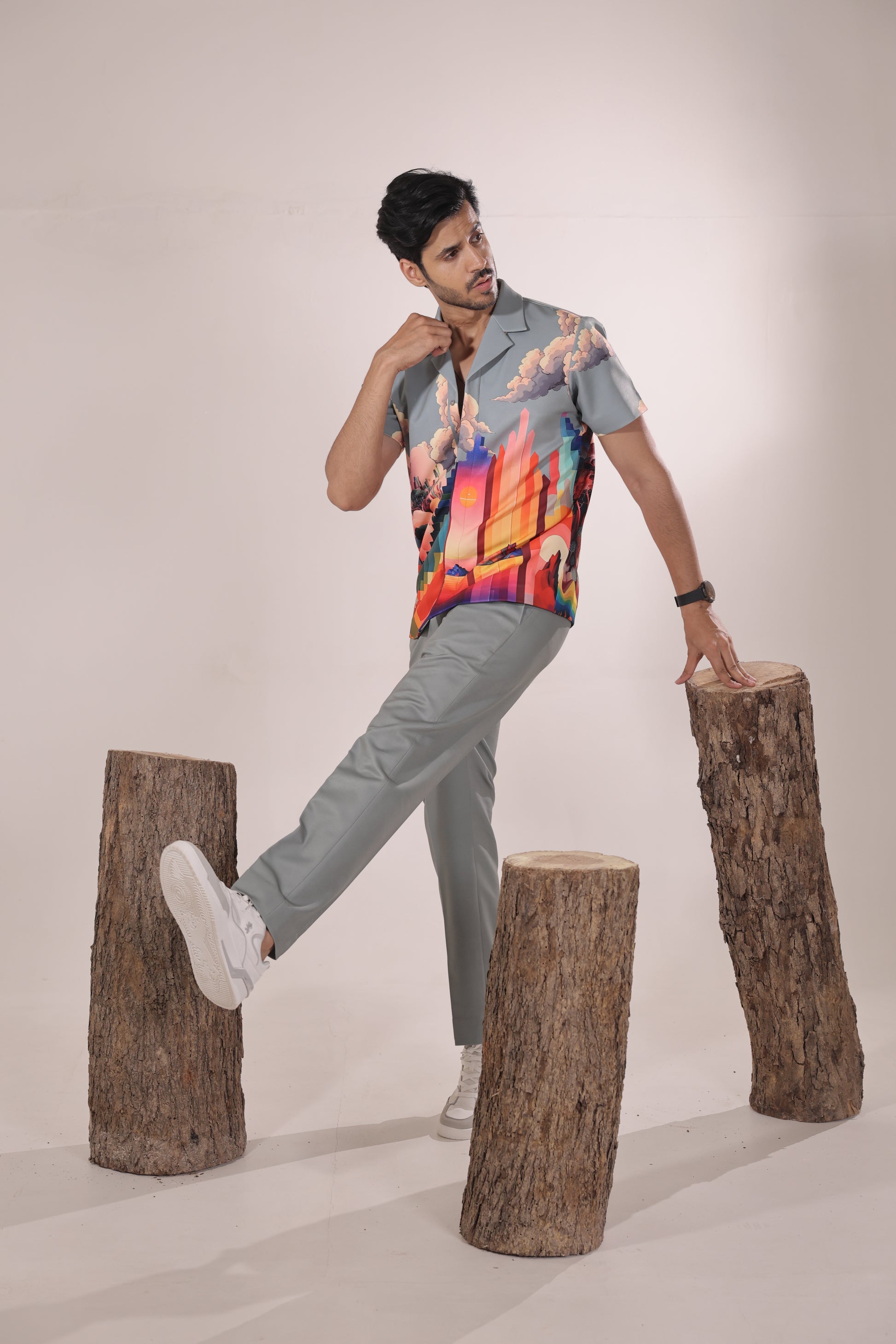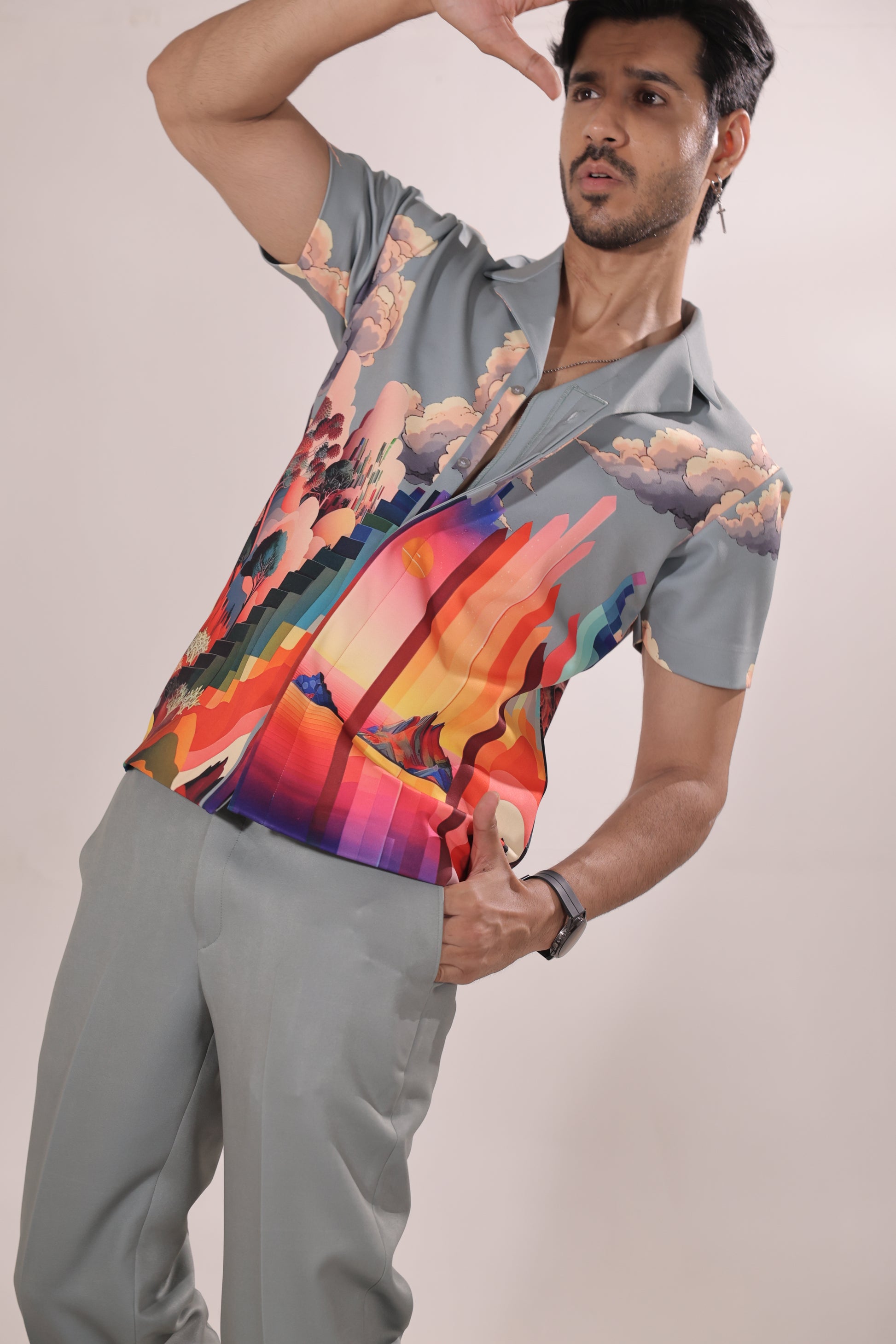 Featuring a grey colour cord set in japenese lycra base inspired with nature paired with straight fit trouser. Perfect wear for parties , cocktail ceremonies & airport looks.