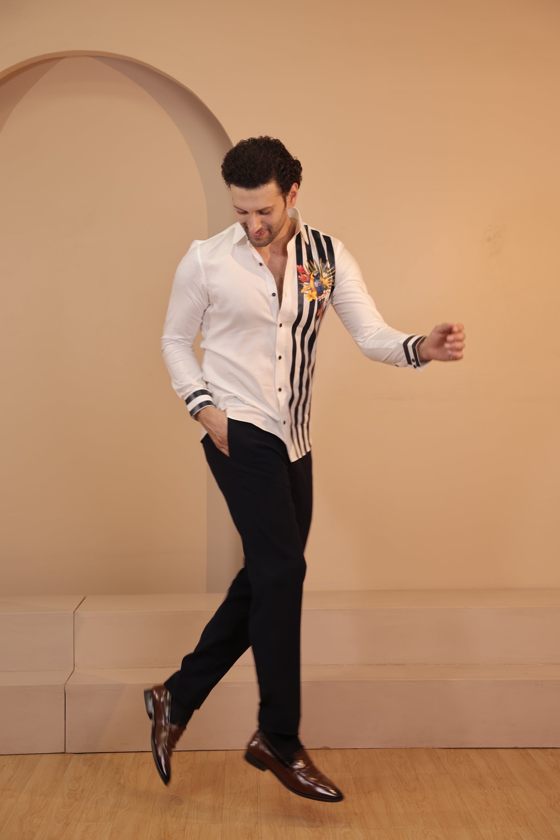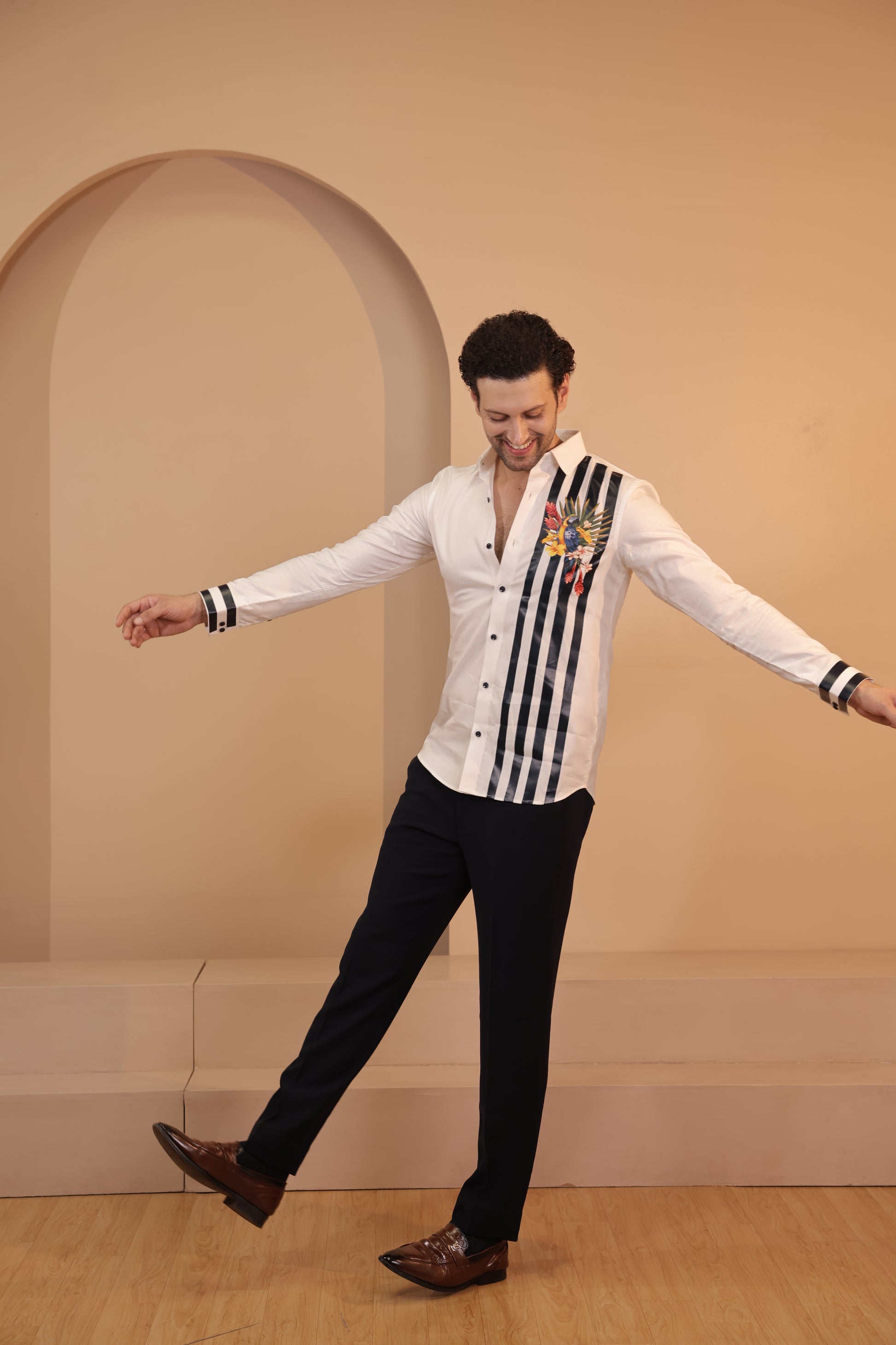 Featuring a heart parrot shirt in cotton fabric. Perfect wear for parties and cocktail ceremonies.