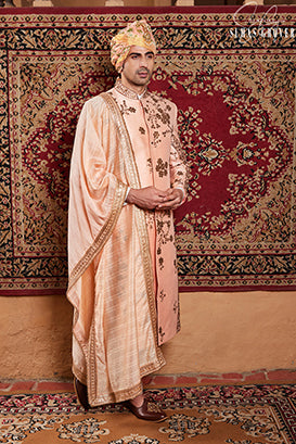 PEACH SHERWANI SET